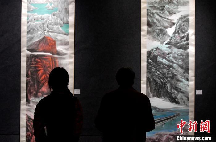 圖為觀眾正在欣賞展覽中的美術(shù)作品。李林 攝