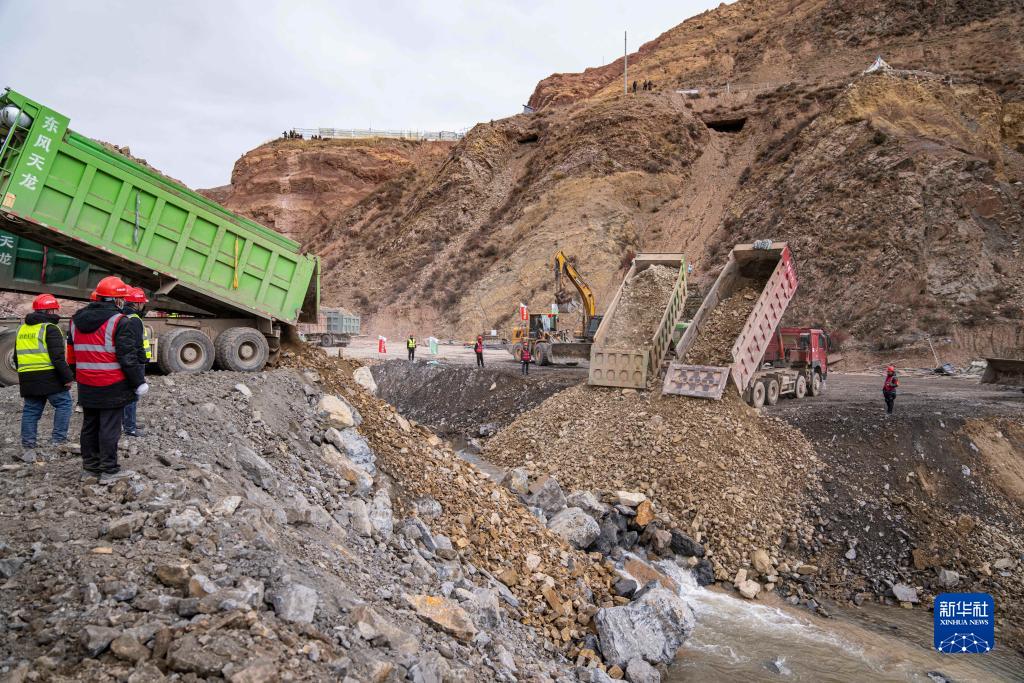 10月31日,施工人員在慶祝河道成功截流。新華社記者 孫非 攝