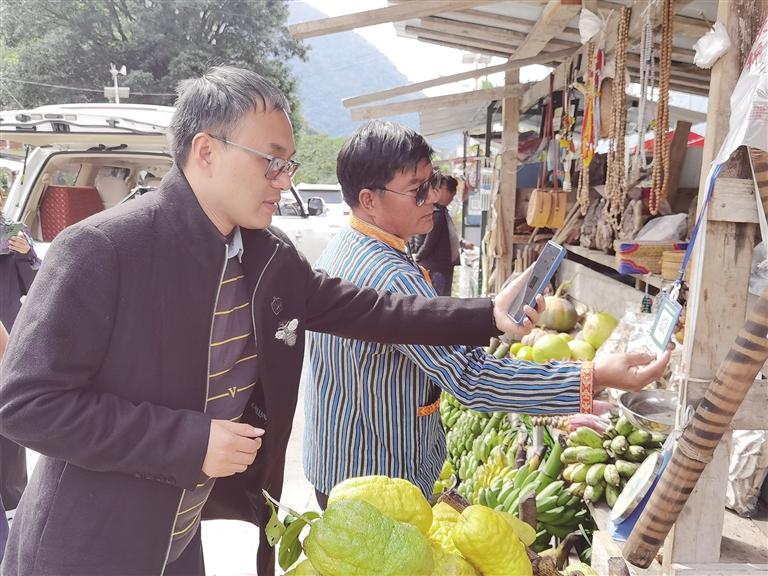 游客正在墨脫縣購買當?shù)氐乃?圖由自治區(qū)交通運輸廳提供