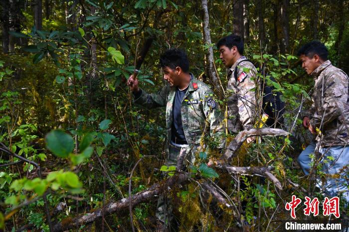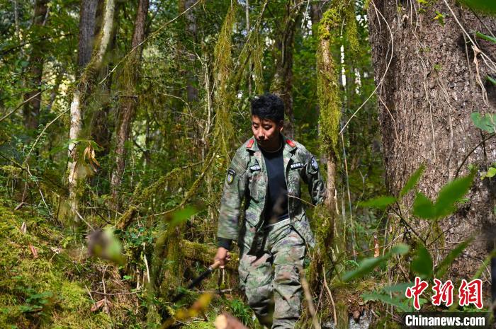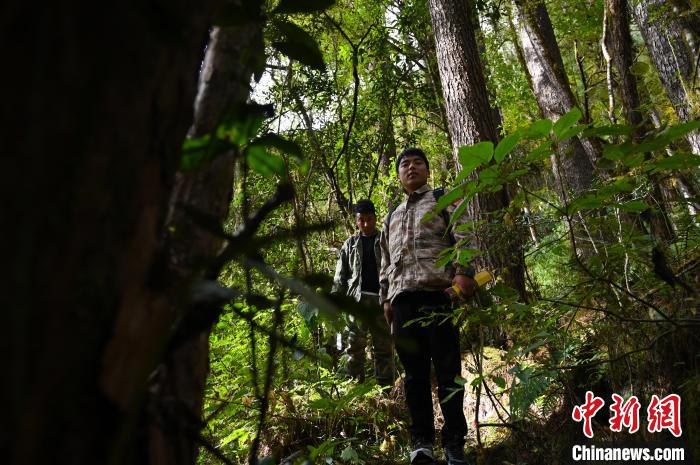 3名管護員到達格當鄉(xiāng)最深處的一片原始森林。正值深秋,對于管護員們來說是最好的季節(jié),雨季結束,蚊蟲也少。他們僅帶了背包和道具,管護站副站長索朗羅珠說:“今天不用過夜,帶的裝備很簡單?!?/p>