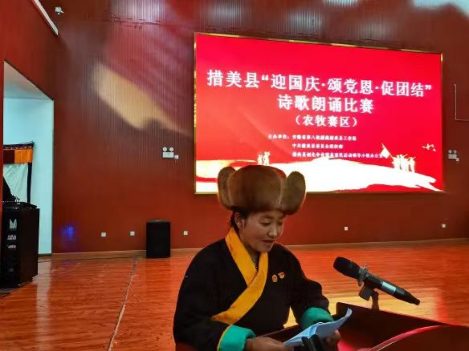 圖為措美縣舉辦“迎國慶 頌黨恩 促團結(jié)”詩歌朗誦比賽。(受訪者供圖)