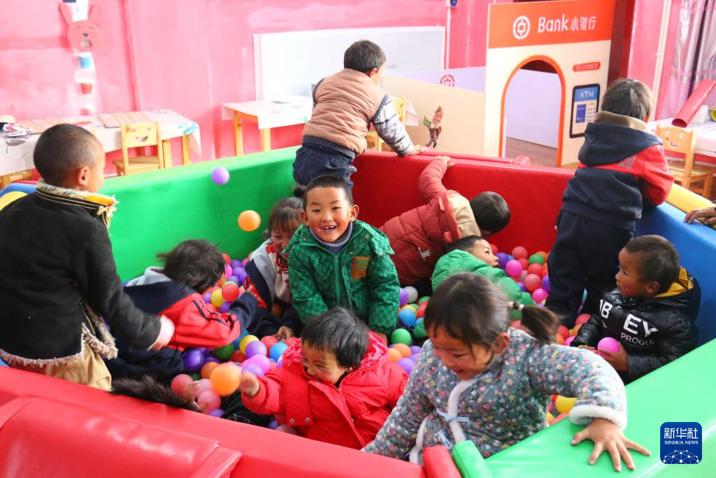 噶爾縣扎西崗鄉(xiāng)幼兒園的孩子們在做游戲(11月6日攝)。新華社記者 陳尚才 攝