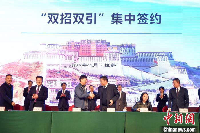 14日,西藏自治區(qū)在拉薩舉行“雙招雙引”(援藏招商引資、招才引智)集中簽約儀式。簽約儀式上,共簽約援藏招商引資項(xiàng)目20個(gè),協(xié)議資金103.08億元(人民幣,下同),涉及清潔能源、生物科技、特色農(nóng)牧、綠色工業(yè)、現(xiàn)代服務(wù)等領(lǐng)域。21名引進(jìn)專家人才代表參加現(xiàn)場(chǎng)簽約。