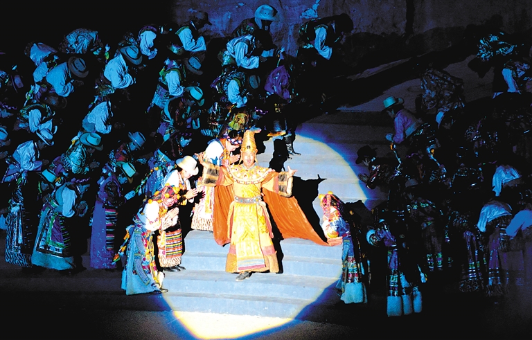 圖為大型實(shí)景史詩(shī)劇《文成公主》演出現(xiàn)場(chǎng)。 記者 次仁平措 唐斌 攝