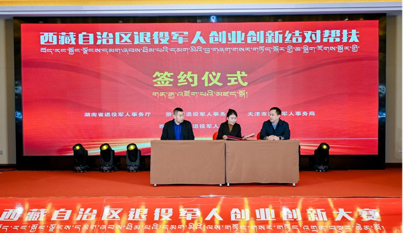 儀式上,西藏自治區(qū)退役軍人事務廳分別與湖南省退役軍人事務廳、浙江省退役軍人事務廳(線上同步簽約)、天津市退役軍人事務局簽署了結對幫扶協(xié)議,為助力西藏退役軍人創(chuàng)業(yè)創(chuàng)新,更好地服務經濟社會發(fā)展奠定了基礎。