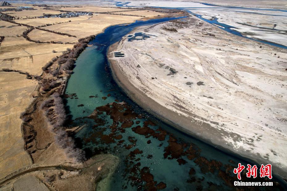 圖為西藏日喀則市桑珠孜區(qū)邊雄鄉(xiāng)是黑頸鶴的主要越冬地之一。(無(wú)人機(jī)照片)李林 攝