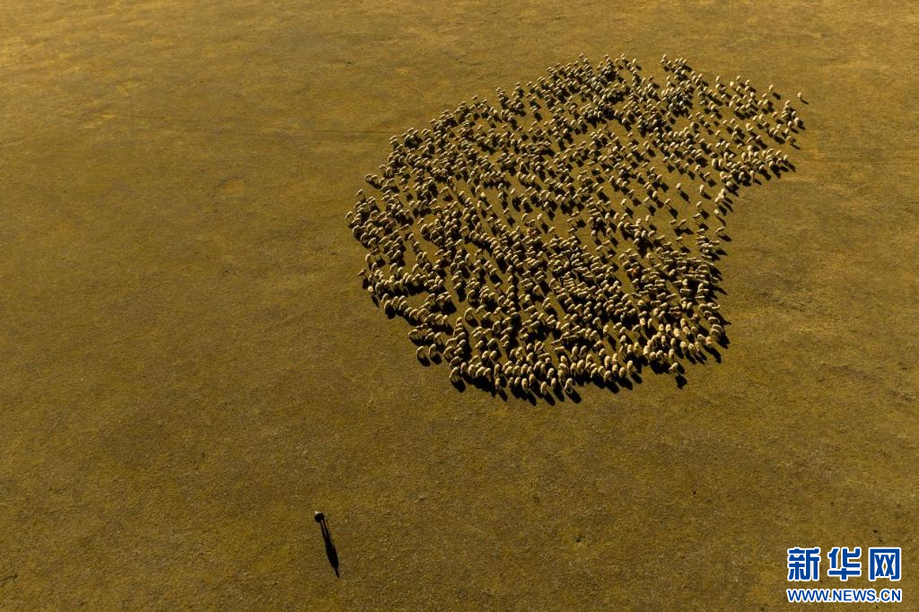 在西藏措美縣境內(nèi)拍攝的羊群(無人機(jī)照片)。新華網(wǎng) 旦增努布 攝