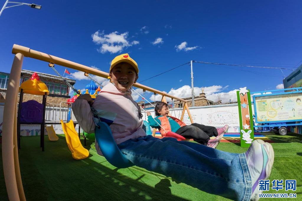 西藏措美縣卓德村幼兒園的小朋友們在課間玩耍。新華網(wǎng) 旦增努布 攝
