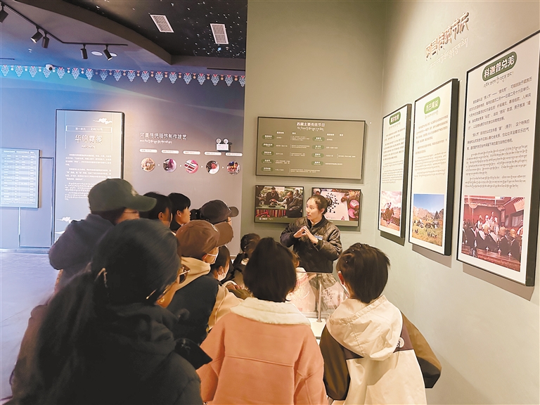 工作中,次仁央金總是能夠出色地完成講解任務(wù),每次講解后她還會(huì)把所感所得記錄下來,用來增加知識儲備,提高自己的工作能力。次仁央金說:“年輕人看待歷史、理解歷史,有自己獨(dú)特的方式和視角,所以我想在向前輩們學(xué)習(xí)的同時(shí),多融入一些年輕人的想法和創(chuàng)意,讓大家在參觀時(shí)不僅能學(xué)習(xí)歷史知識,還能親身感受到博物館里的青春和活力,變得和我們一樣熱愛博物館?!?/p>