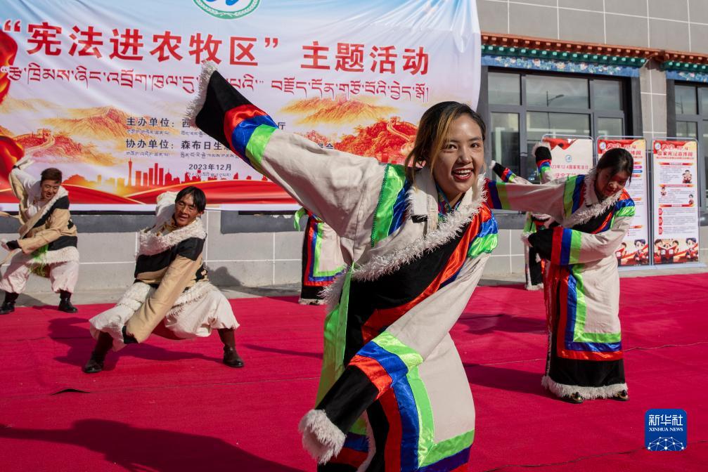 當(dāng)日,“憲法進農(nóng)牧區(qū)”主題活動在西藏山南市貢嘎縣森布日生態(tài)搬遷安置點舉行,西藏自治區(qū)農(nóng)業(yè)農(nóng)村廳向當(dāng)?shù)剞r(nóng)牧民群眾贈送了《中華人民共和國憲法》及相關(guān)法律書籍。森布日位于雅魯藏布江北岸,海拔約3600米,聚居著來自那曲雙湖、尼瑪、安多等縣的高海拔生態(tài)搬遷移民。