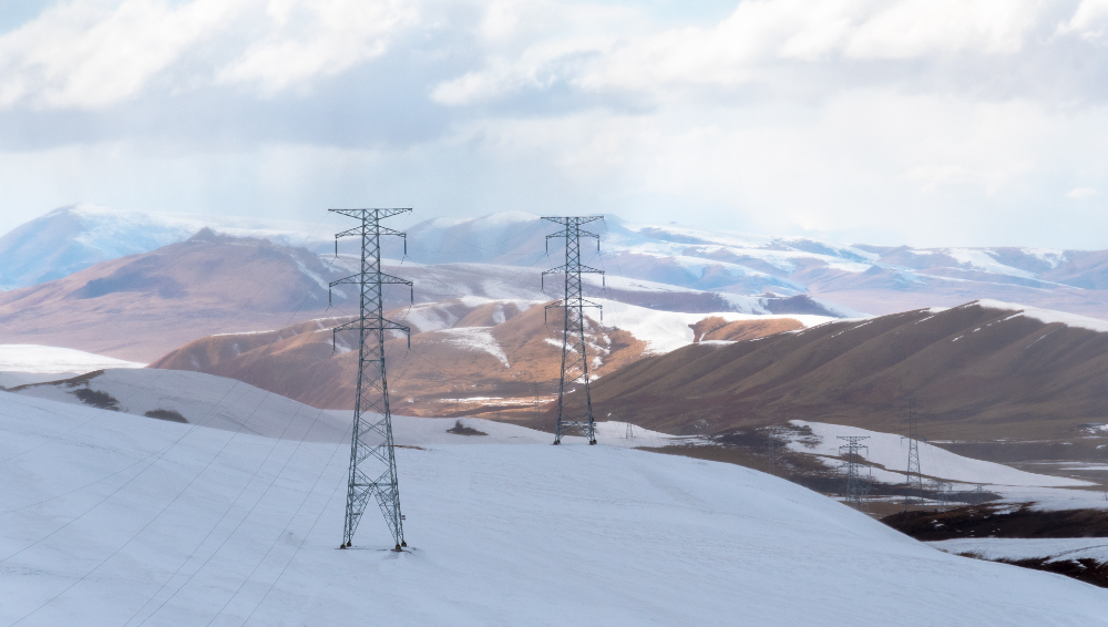 羌塘草原冰天雪地里的電網(wǎng)。(趙清鵬 攝)