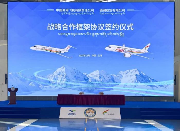 據(jù)“西藏航空”公眾號消息,12月17日,西藏航空與中國商飛公司簽署戰(zhàn)略合作框架協(xié)議,共同推進(jìn)研制具有我國自主知識產(chǎn)權(quán)的國產(chǎn)大飛機(jī)高原機(jī)型。