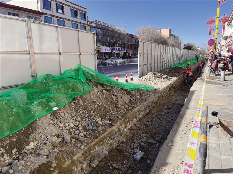 時(shí)值深冬,拉薩城中有一群人正如火如荼地忙碌著。12月18日,記者來(lái)到納金路,工人們正在進(jìn)行路面燃?xì)夤艿栏脑?。挖掘的泥土被綠色網(wǎng)蓋住,并未四處飛揚(yáng),剛澆筑的混凝土都鋪上厚厚的棉被以達(dá)到養(yǎng)護(hù)效果。四川佳成建設(shè)有限公司負(fù)責(zé)此次路面項(xiàng)目,現(xiàn)場(chǎng)管理陳文韜告訴記者:“為了盡快完成工作,還市民一條通暢的道路,我們已經(jīng)將工人分為24小時(shí)3班制,在保證安全的前提下加快施工進(jìn)度,預(yù)計(jì)在12月31日左右完成路面的工作?!标愇捻w還表示,路面大部分工程都是通過(guò)人工挖掘,噪音不大。如遇見需要使用機(jī)器的情況,也會(huì)在白天施工,晚上10點(diǎn)前必須停止,爭(zhēng)取做到不給居民的生活帶來(lái)困擾。