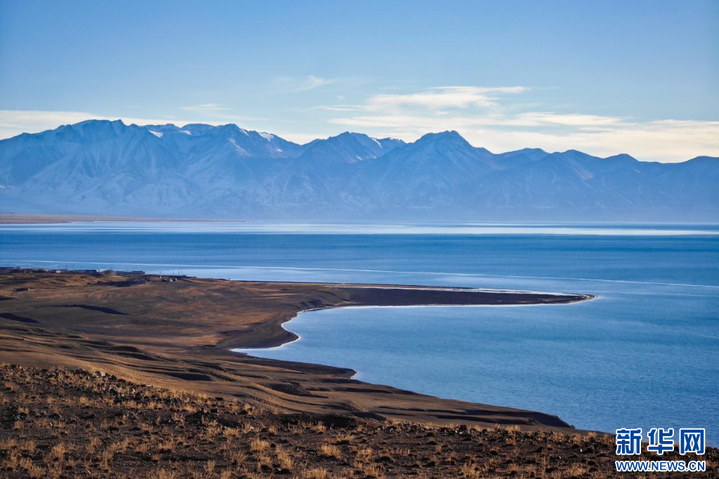 12月20日拍攝的當惹雍錯和遠處的雪山。新華網 旦增努布 攝