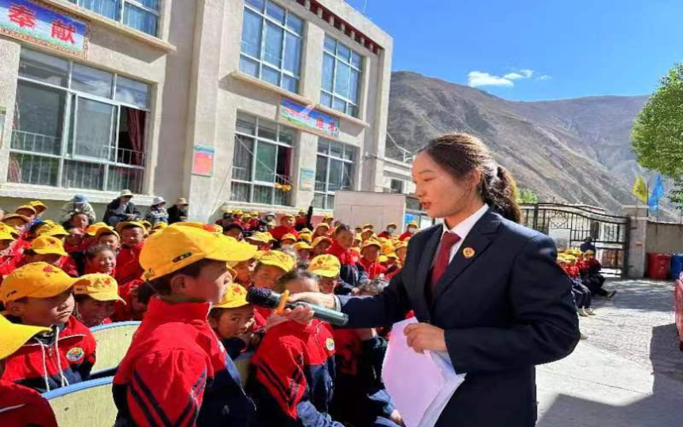 2023年“六一”國際兒童節(jié),尼木縣人民檢察院黨組書記、檢察長德吉桑姆帶領(lǐng)“文香·藍(lán)”法律宣傳服務(wù)隊(duì)前往帕古鄉(xiāng)完小開展法治進(jìn)校園活動(dòng)。