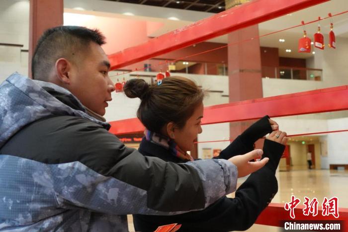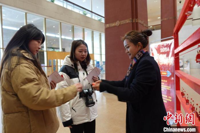 當(dāng)日上午,西藏博物館中央大廳聚集了許多參加現(xiàn)場(chǎng)活動(dòng)的游客。游客以隨機(jī)抽福袋、領(lǐng)獎(jiǎng)品的形式參與活動(dòng)。參與者紛紛表示在新年的第一天開展這樣的活動(dòng)很有意義。針對(duì)元旦期間來(lái)館參觀的游客,西藏博物館還制作有館藏文物元素的主題紀(jì)念賀卡供游客留念。