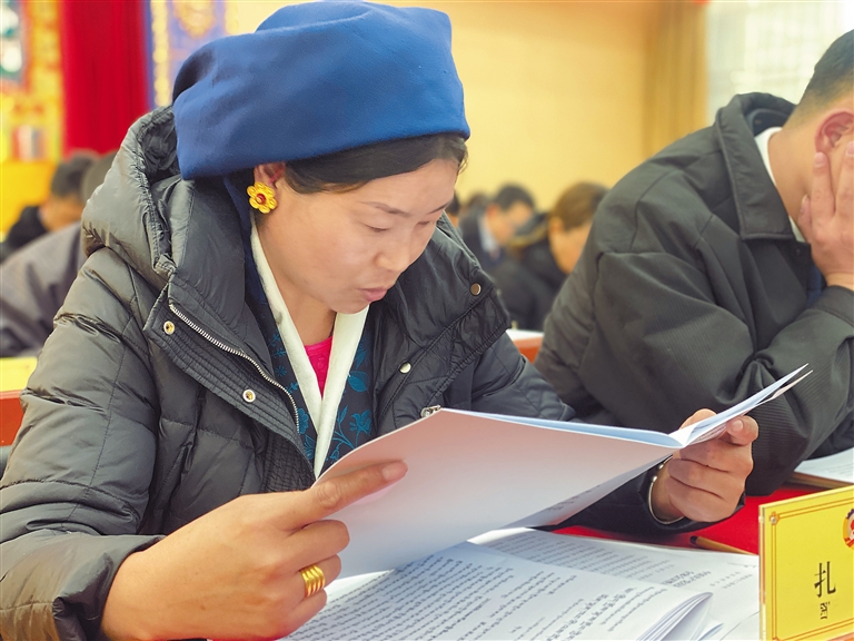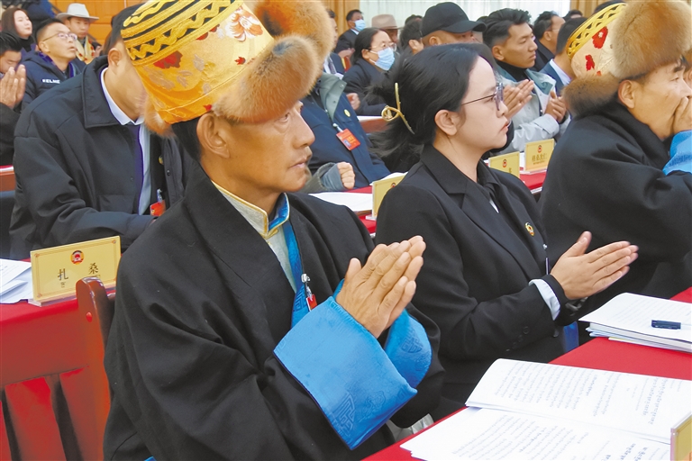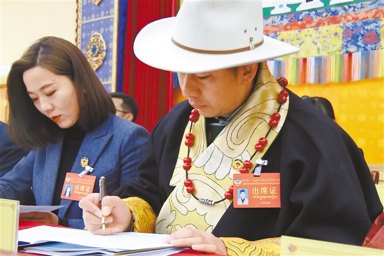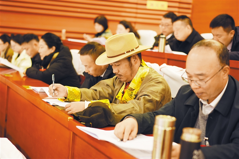 圖為基層委員認(rèn)真聆聽政協(xié)拉薩市委員會(huì)工作報(bào)告。