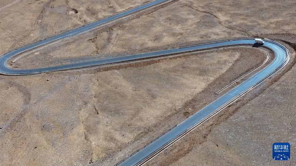 申扎縣供銷合作社為馬躍鄉(xiāng)貝嘎四村偏遠(yuǎn)鄉(xiāng)鎮(zhèn)果蔬配送試點項目直銷點配送新鮮果蔬的貨車,行駛在盤山公路上,這個村距離申扎縣城150公里(無人機(jī)照片,1月5日攝)。新華社記者 旦增尼瑪曲珠 攝