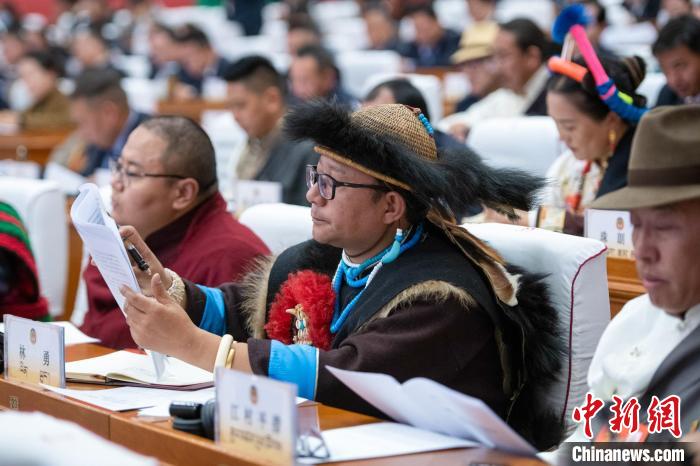 圖為西藏政協(xié)委員在開幕會現(xiàn)場。貢嘎來松 攝