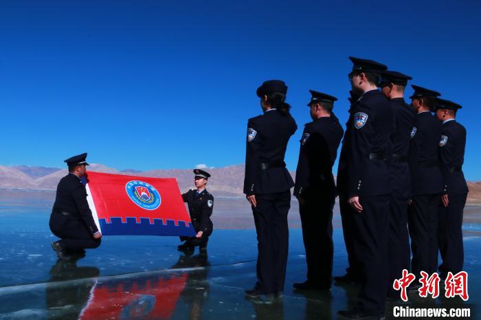 圖為日土邊境派出所民警向警旗宣誓。羅發(fā)燕攝