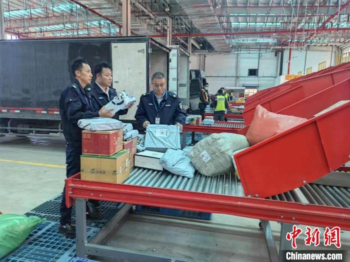 圖為2023年,拉薩市煙草專賣局執(zhí)法人員在查辦物流寄遞環(huán)節(jié)違法卷煙。拉薩市煙草專賣局供圖