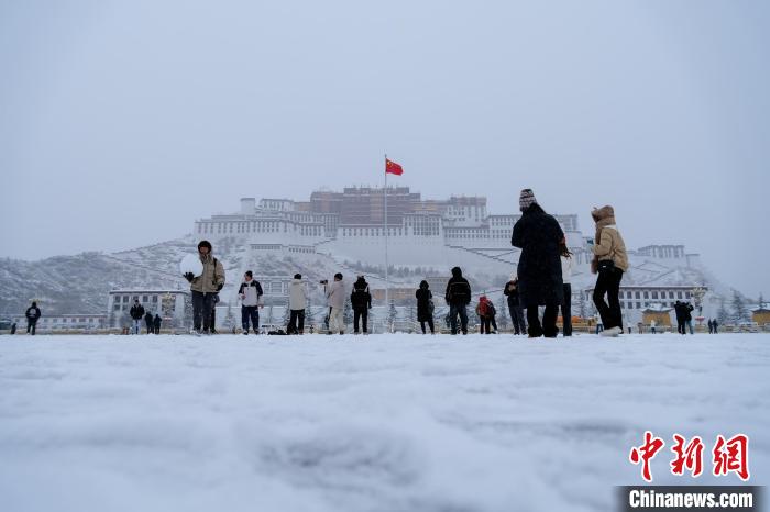 圖為1月18日上午,民眾在拉薩布達(dá)拉宮廣場賞雪。江飛波 攝