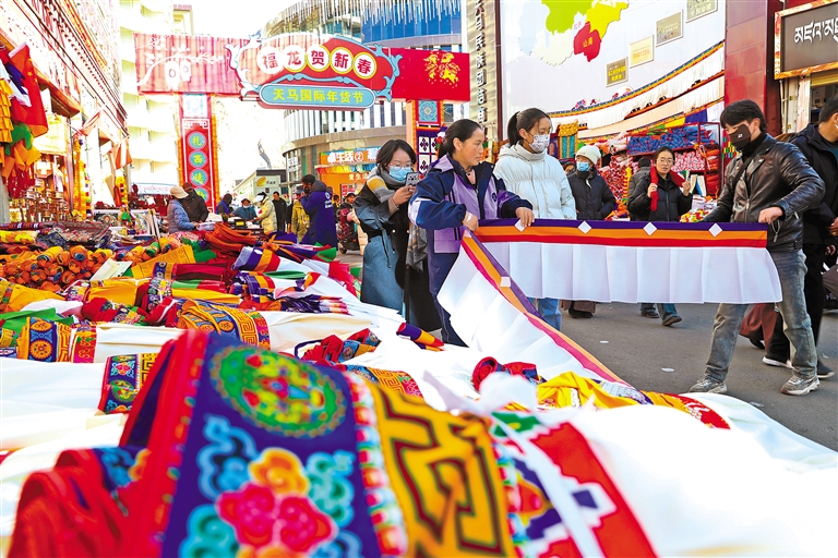 春節(jié)、藏歷新年臨近,年貨市場開始熱鬧起來。山南市澤當(dāng)鎮(zhèn)市民紛紛走進(jìn)大型商超和農(nóng)貿(mào)市場選購節(jié)日貨品,商戶備足貨源,推出讓利促銷活動(dòng),滿足各族群眾消費(fèi)需求,年貨市場呈現(xiàn)出購銷兩旺的良好態(tài)勢。