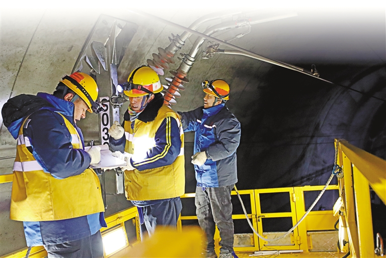 為保障春運(yùn)安全,中國(guó)鐵路青藏集團(tuán)公司拉薩基礎(chǔ)設(shè)施段拉薩南接觸網(wǎng)維修隊(duì)正在對(duì)白堆站至協(xié)榮站區(qū)間的接觸網(wǎng)設(shè)備進(jìn)行重點(diǎn)檢修。記者 旦增蘭澤 通訊員 拉巴次仁 攝