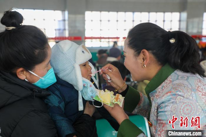 春運首日,拉薩車務段在日喀則站候車大廳開展“溫馨出行 文明出行”主題活動,火車站青年職工帶來了日喀則當?shù)靥厣顝棾?,并為旅客送上溫暖的甜茶,和旅客一起分享蛋糕慶祝日喀則站第十個春運等活動,營造出喜迎新春的節(jié)日氛圍。