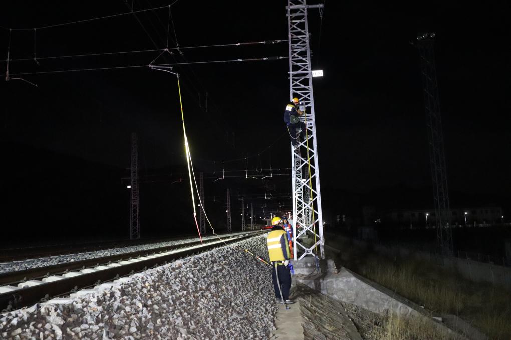 接觸網(wǎng)源源不斷地為電力火車提供電力,就像電氣化鐵路的“血管”。“我們就是高原電氣化鐵路的醫(yī)生,每天夜里,為它的‘血管’做一場細(xì)致的手術(shù),保證接觸網(wǎng)安全暢通?!崩罘e王說,細(xì)致的夜間作業(yè)確保了拉林鐵路在春運(yùn)期間能夠安全、高效地運(yùn)行。