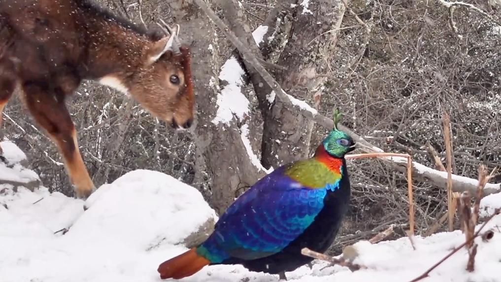 近日,“新春走基層”記者在中國與不丹交界的西藏洛扎縣拉康鎮(zhèn),拍到了喜馬拉雅斑羚和棕尾虹雉兩種珍稀野生動(dòng)物同框的畫面。喜馬拉雅斑羚和棕尾虹雉均是國家一級(jí)保護(hù)動(dòng)物。