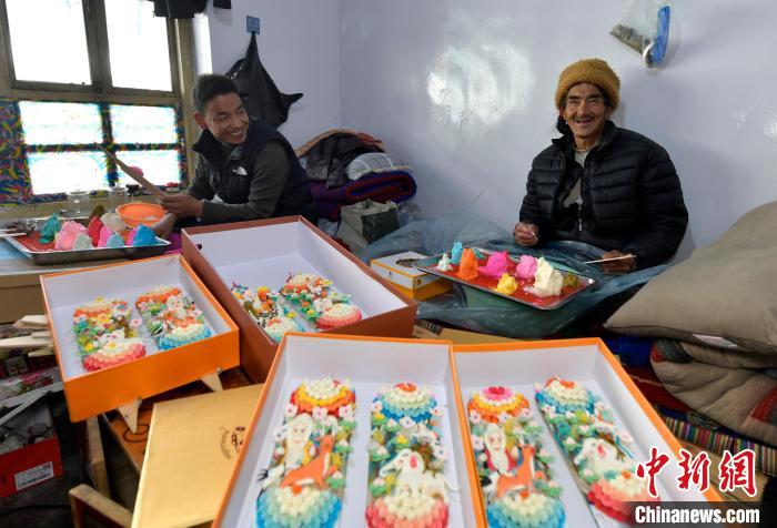為了每年都能有造型獨(dú)特、樣式新穎的酥油花面向市場,米瑪和家人一直摸索創(chuàng)新?!斑@個(gè)就是我兒子這么多年摸索出來的。我們會(huì)從藏式房屋的繪畫中學(xué)習(xí)圖案、顏色等。酥油花上的每一朵花瓣,都是捏制了無數(shù)遍才確定?!币?yàn)橹谱骷妓嚲?,米瑪擁有了一批固定的客戶?/p>