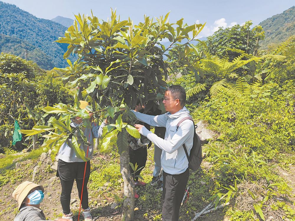 在西藏林芝市墨脫縣背崩鄉(xiāng)西讓村,福建省農(nóng)科院果樹(shù)研究所副研究員姜帆(右一)在傳授白肉枇杷種植技術(shù)。(資料照片,受訪者供圖)