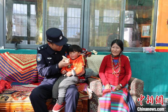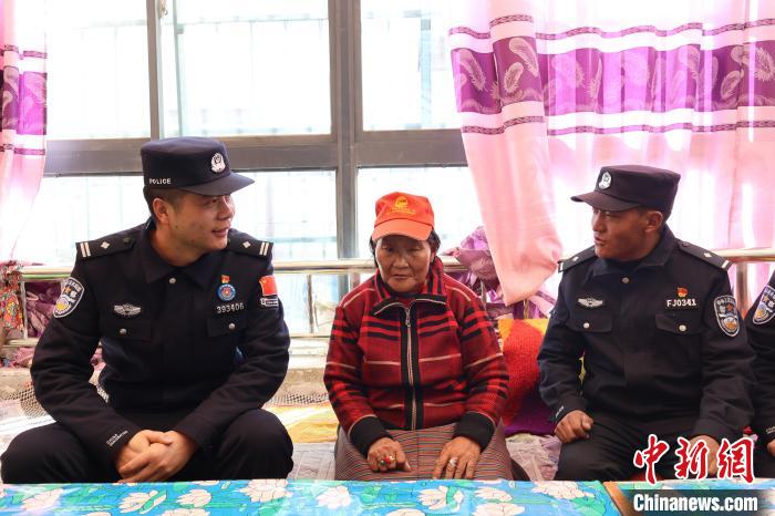 圖為民警劉志和看望轄區(qū)困難群眾白瑪曲吉?!№n金彪 攝