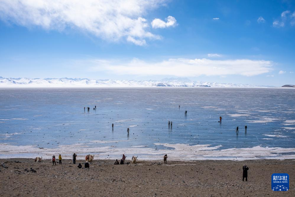 2月8日,游客在結(jié)冰的納木錯湖面上游玩。新華社記者 孫非 攝