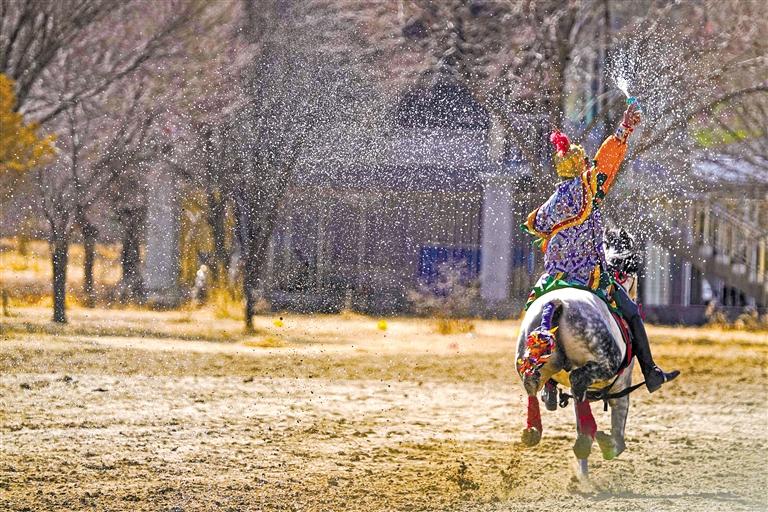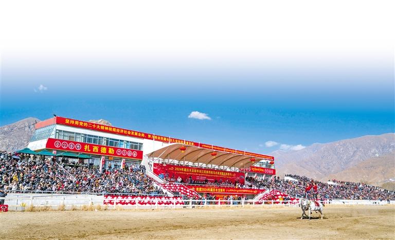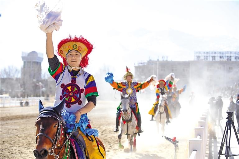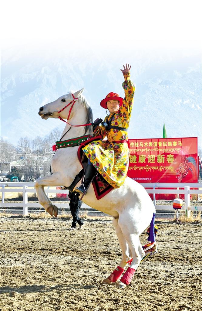 2月12日藏歷新年初三,主題為“體育大拜年,健康迎新春”的民族傳統(tǒng)馬術(shù)表演暨民族賽馬活動在拉薩賽馬場舉行。