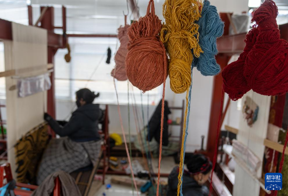 一名婦女在編織藏毯(2月22日攝)。新華社記者 旦增尼瑪曲珠 攝