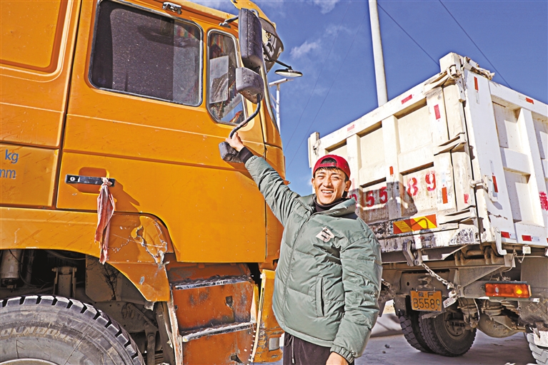 圖為村民格桑平措和他的運(yùn)輸車(chē)。記者 洛桑旦增 達(dá)珍 攝