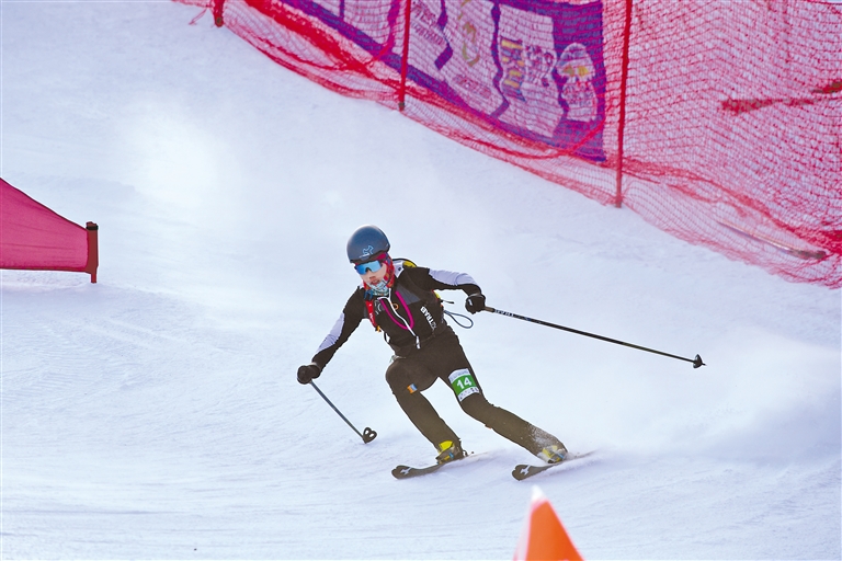 圖為獲得單板滑雪障礙追逐項(xiàng)目青年組女子冠軍的西藏選手擁青拉姆。洛桑 索朗群培 攝