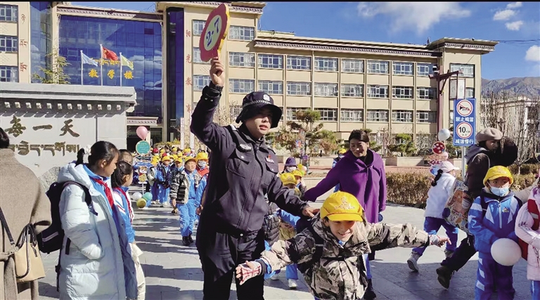 站在學校門口,等待孩子的家長央金感觸頗深,她告訴記者,每次開學前、開學時、開學后,都能看到民警們忙碌的身影。為學校家長提供幫助,為學生消除安全隱患,營造了安全、和諧、文明的校園環(huán)境,十分感謝他們?!敖裉靾蟮嚼?,我們看到警察叔叔和阿姨就覺得很安心、很開心。”實驗小學3年級10班學生白瑪娜薩說。