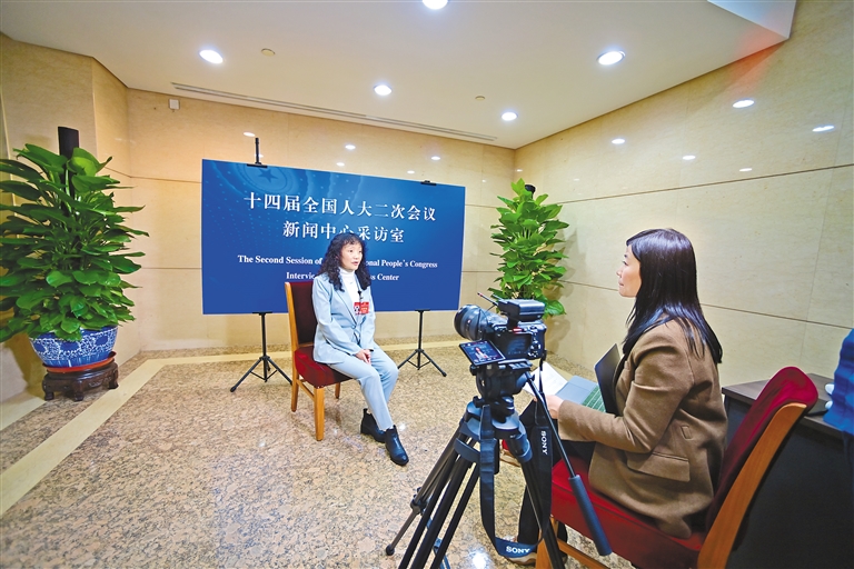 圖為全國人大代表白瑪措接受中央媒體采訪。記者 旦增西旦 攝