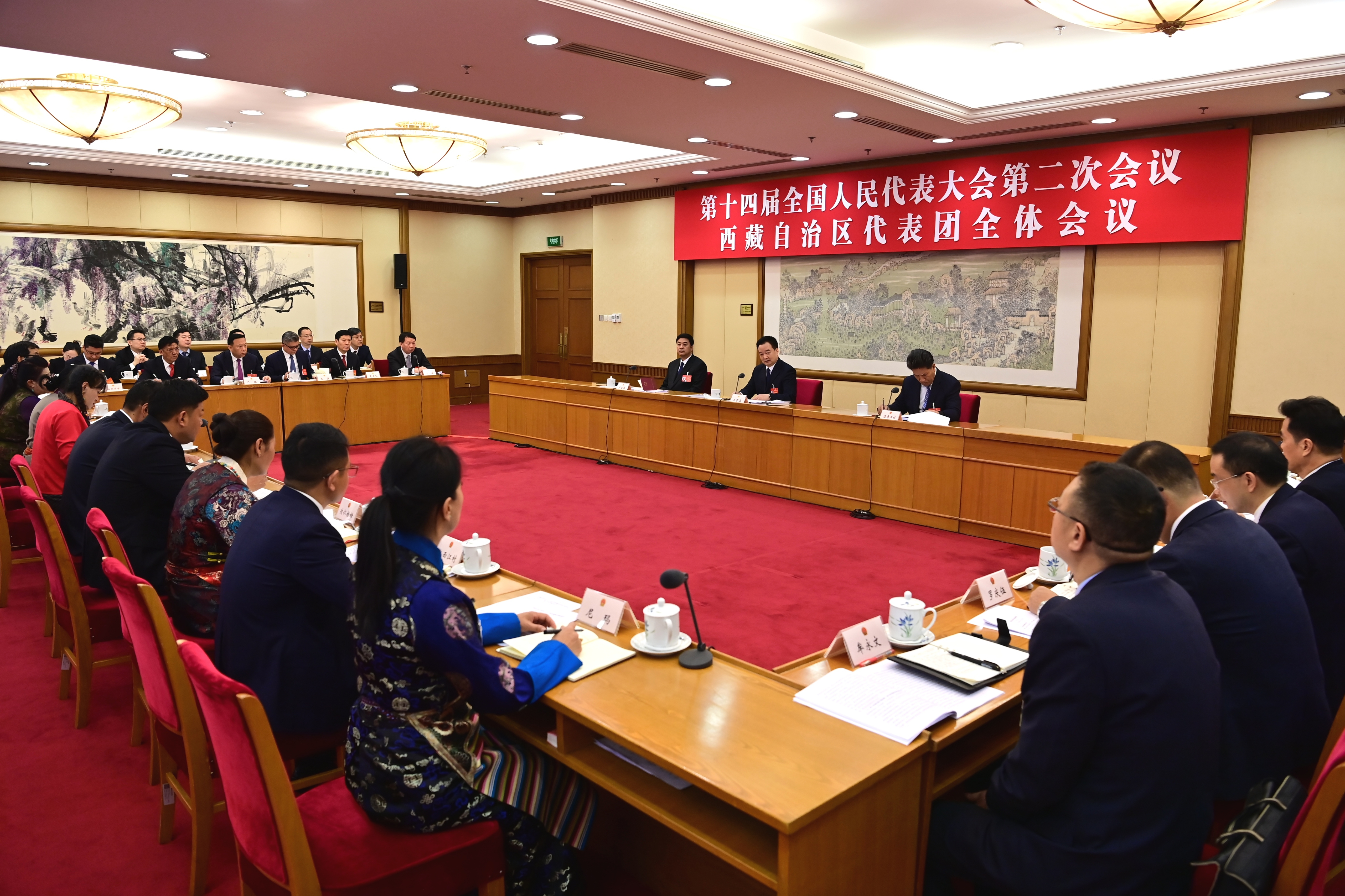 西藏代表團(tuán)審議政府工作報(bào)告,西藏代表團(tuán)團(tuán)長(zhǎng)、自治區(qū)黨委書(shū)記王君正講話。記者 旦增西旦 攝