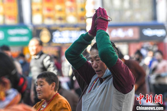 3月14日,西藏拉薩,信眾在大昭寺門(mén)口朝拜祈福。中新社記者 貢嘎來(lái)松 攝