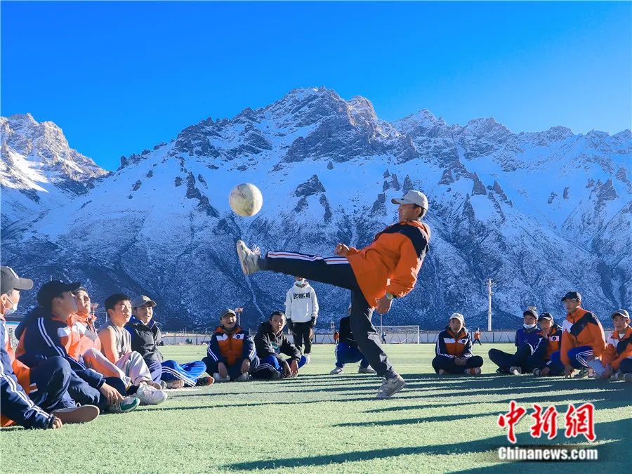 2022年11月25日,西藏那曲市嘉黎縣中學(xué)的高原球場(chǎng)上學(xué)生們?cè)谶M(jìn)行足球訓(xùn)練。據(jù)了解,這座海拔4500米的高原球場(chǎng)是全校2500余名學(xué)生上體育課的地方,也是訓(xùn)練足球的場(chǎng)地。色曲多吉 攝