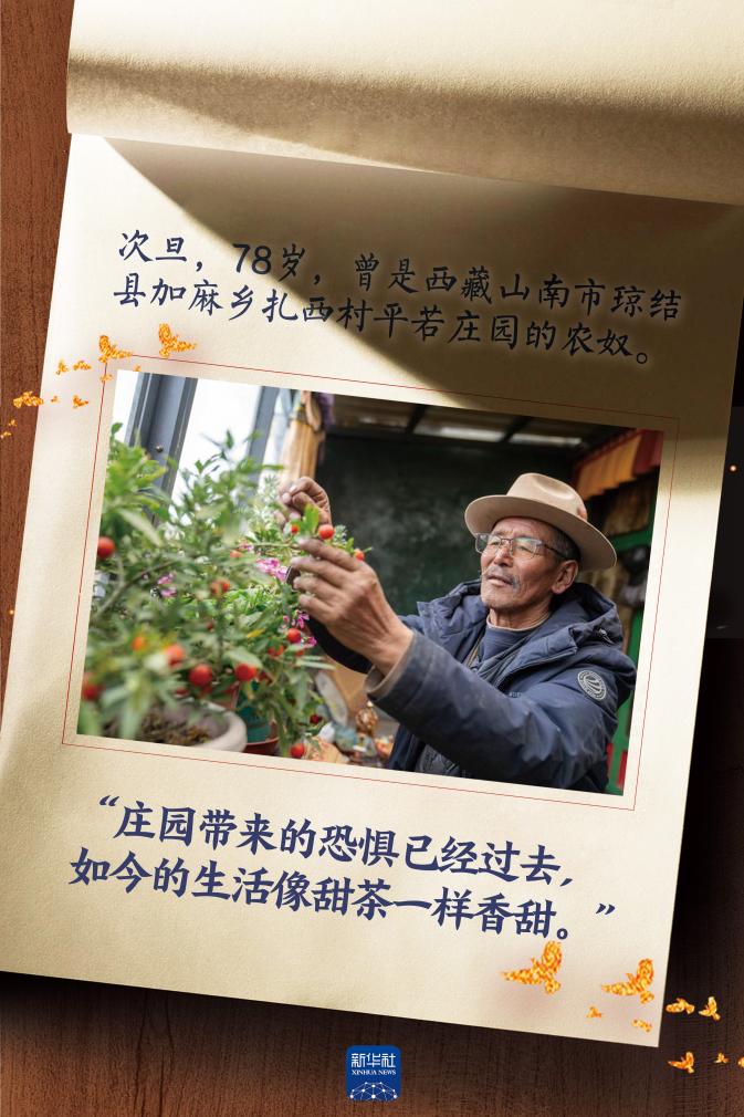 從昏暗羊圈到藏式二層小樓,次旦家的變化天翻地覆?!扒f園帶來的恐懼已經(jīng)過去,現(xiàn)在兒女都長大成人,我有養(yǎng)老金、有醫(yī)保,沒有后顧之憂。如今我們的生活像甜茶一樣香甜?!贝蔚┱f。(參與采寫:旦增尼瑪曲珠)