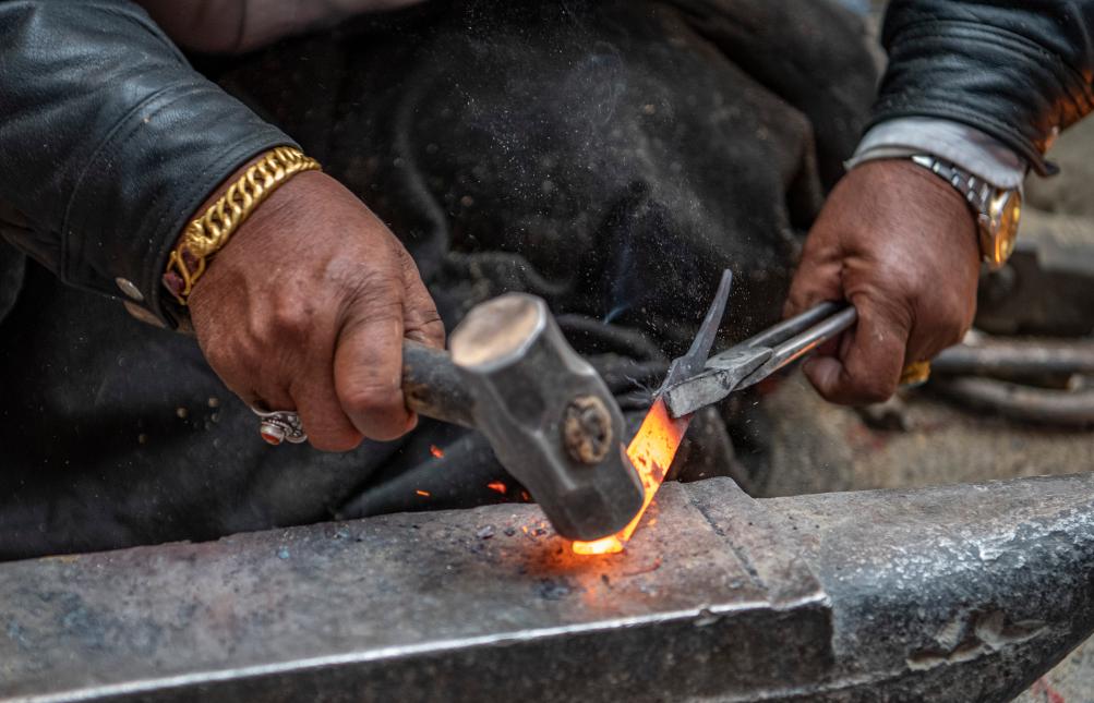西藏民主改革后,多吉跟著父親學(xué)習(xí)打鐵技藝,成為當(dāng)?shù)剡h近聞名的鐵匠。