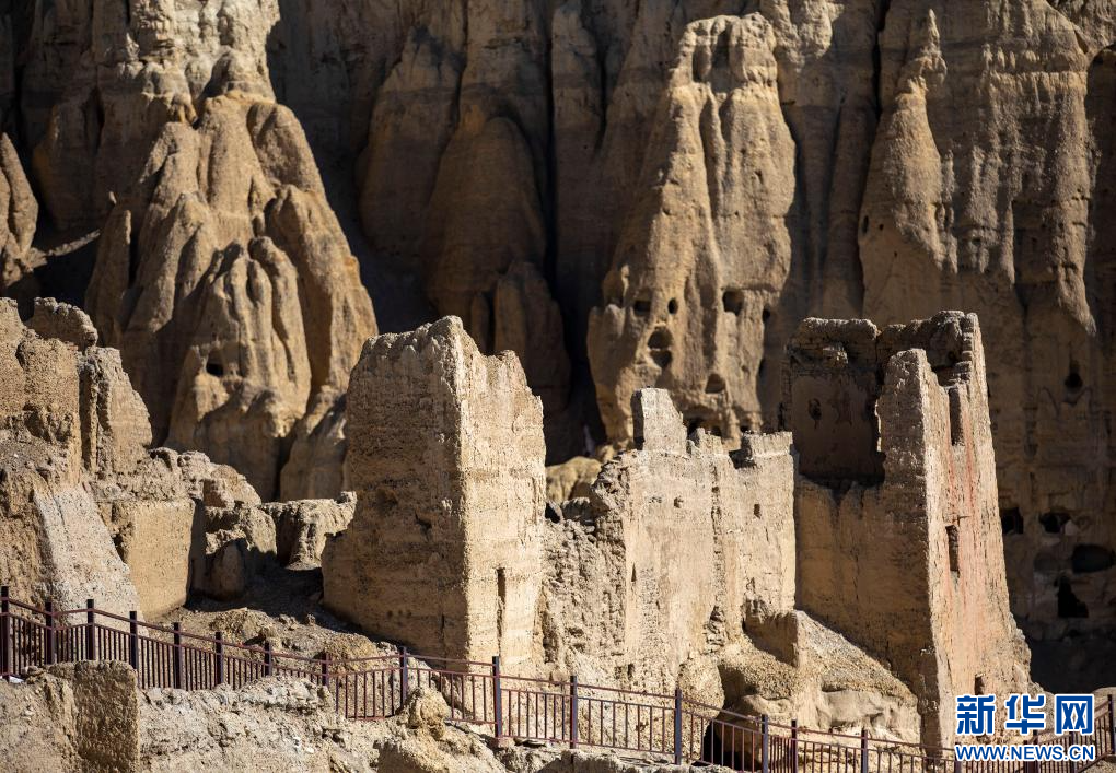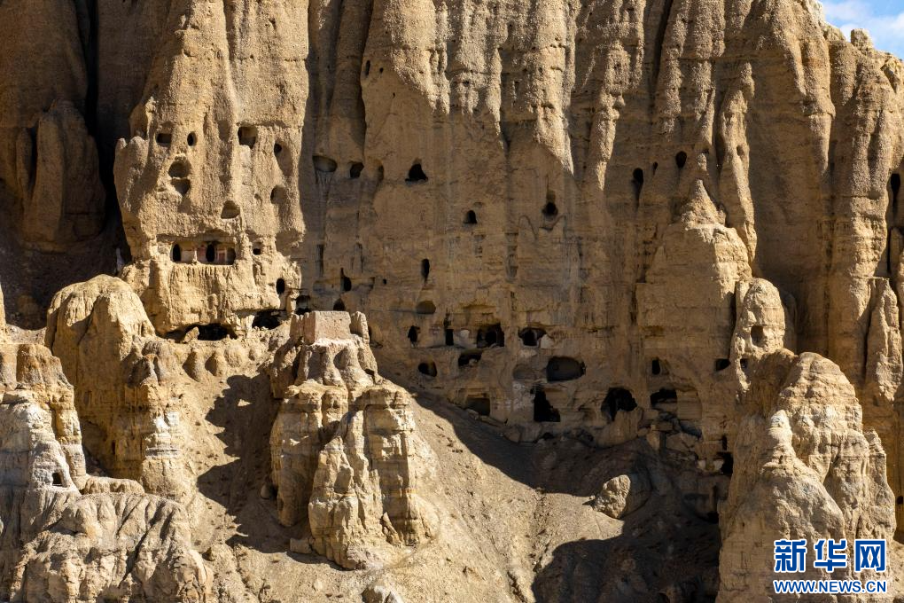 達巴遺址位于西藏阿里地區(qū)札達縣境內,其主要建筑分布在兩座山脊之上,整個遺址共有洞穴200余處,且有獨立的碉樓、寺廟建筑遺跡、居民窯洞等建筑,在白雪的映襯下,顯得格外雄渾而神秘。