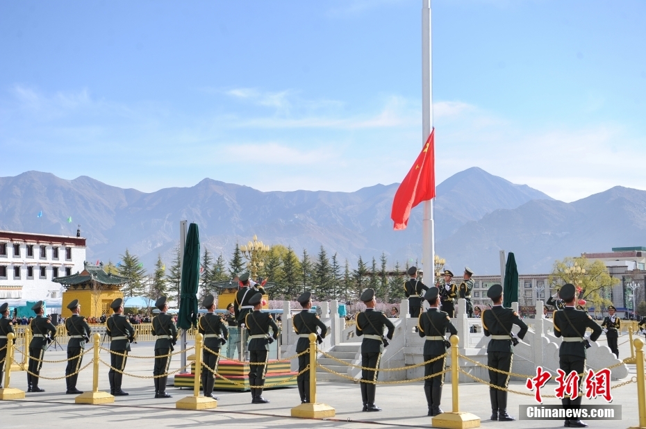3月28日,西藏各族各界人士聚集在拉薩布達拉宮廣場,升國旗、唱國歌,參加西藏百萬農(nóng)奴解放65周年紀(jì)念活動。圖為升國旗儀式現(xiàn)場。中新社記者 貢嘎來松 攝