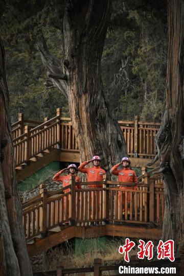 圖為消防員守護(hù)千年柏樹(shù)。西繞拉翁 攝