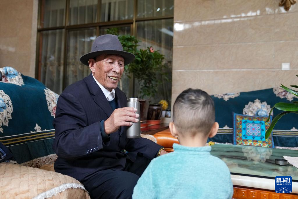 他的大兒女和二女兒在拉薩市中心開了一家甜茶館,小女兒在銀行工作。洛桑說,平時在家照看外孫,偶爾到公園鍛煉身體,日子過得非常幸福。